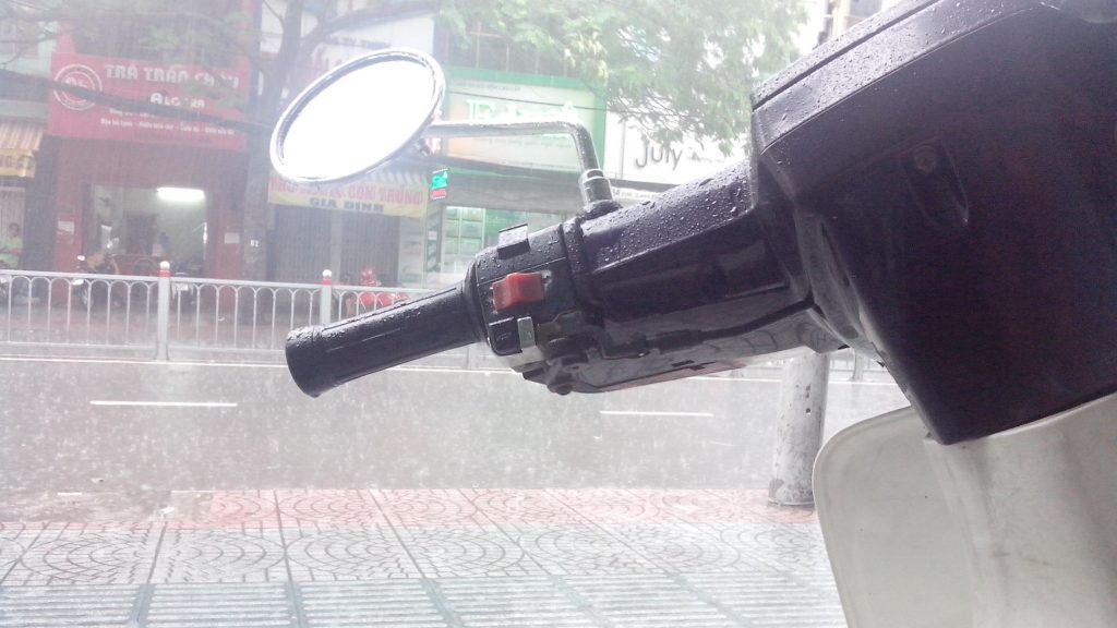 Sài Gòn mùa này hay có mưa. Mưa thường vào buổi chiều. Có khi là mưa rắc rây nhè nhẹ, mưa chòm mây nhưng cũng có khi mưa kéo dài từ chiều đến nửa đêm. Buổi trưa trời nắng hửng, nhưng chỉ chừng đến ba giờ chiều là tối sầm lại, rồi mưa. Mưa Sài Gòn thường rất nặng hạt, mưa đổ xuống ào ào, người chạy xe máy trên đường lắm khi không mở mắt ra nổi để mà chạy xe. Mưa xuống, có nghĩa là phố phường sũng nước, phố chảy thành sông. Và kẹt xe. Những lô cốt giữa đường ở khắp nơi trong thành phố và lượng xe máy đông nghịt làm cho nạn kẹt xe ở Sài Gòn ngày càng trầm trọng hơn.